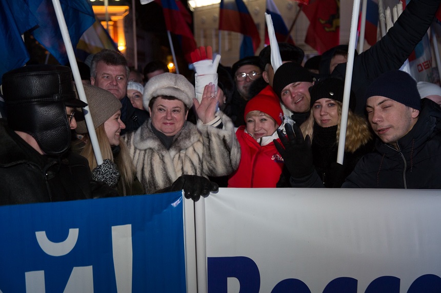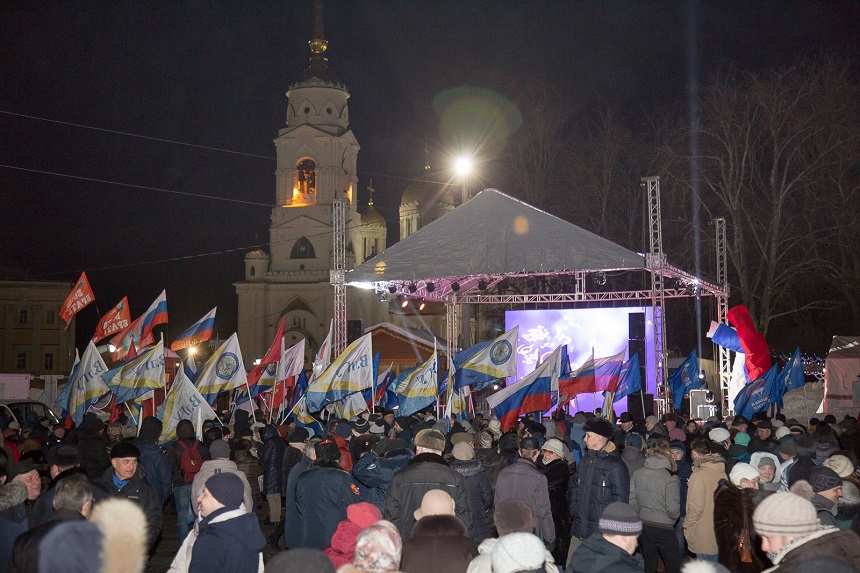 18 марта на Соборной площади Владимира состоялся многотысячный митинг-концерт «Россия-Крым: вместе навсегда», посвященный четвертой годовщине воссоединения Крыма с Россией. Участие в нем приняли Губернатор Светлана Орлова, её первый заместитель Лидия Смолина, вице-губернаторы Александр Лобаков, Александр Трутнев, Сергей Невзоров, Ренат Чагаев, главный федеральный инспектор по Владимирской области Сергей Мамеев, заместитель председателя Законодательного собрания Ольга Хохлова, руководители структурных подразделений областной администрации, глава города Владимира Ольга Деева и глава администрации областного центра Андрей Шохин, представители силовых структур Владимирской области, муниципальных образований, трудовых коллективов, политических партий и общественных организаций Владимирской области, молодёжь и ветераны, а также все неравнодушные граждане. Митинг-концерт был инициирован к проведению Владимирским областным отделением Всероссийской общественной организации ветеранов «Боевое братство».