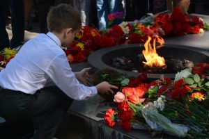 С патриотической программой выступили ученики и воспитанники детских садов. После чего гусевчане возложили венки и цветы к мемориалу. Финальным аккордом мероприятия стала фотография на память с ветеранами.