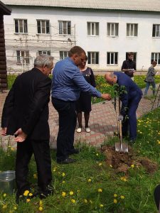 Программой встречи была предусмотрена экологическая акция по благоустройству территории Матрёнина двора, в которой принял участие и В.Н. Киселев, посадивший куст сирени. Синевато-лиловые с аметистовым оттенком цветки кустарника гармонично вписались в общий дизайн территории учреждения.