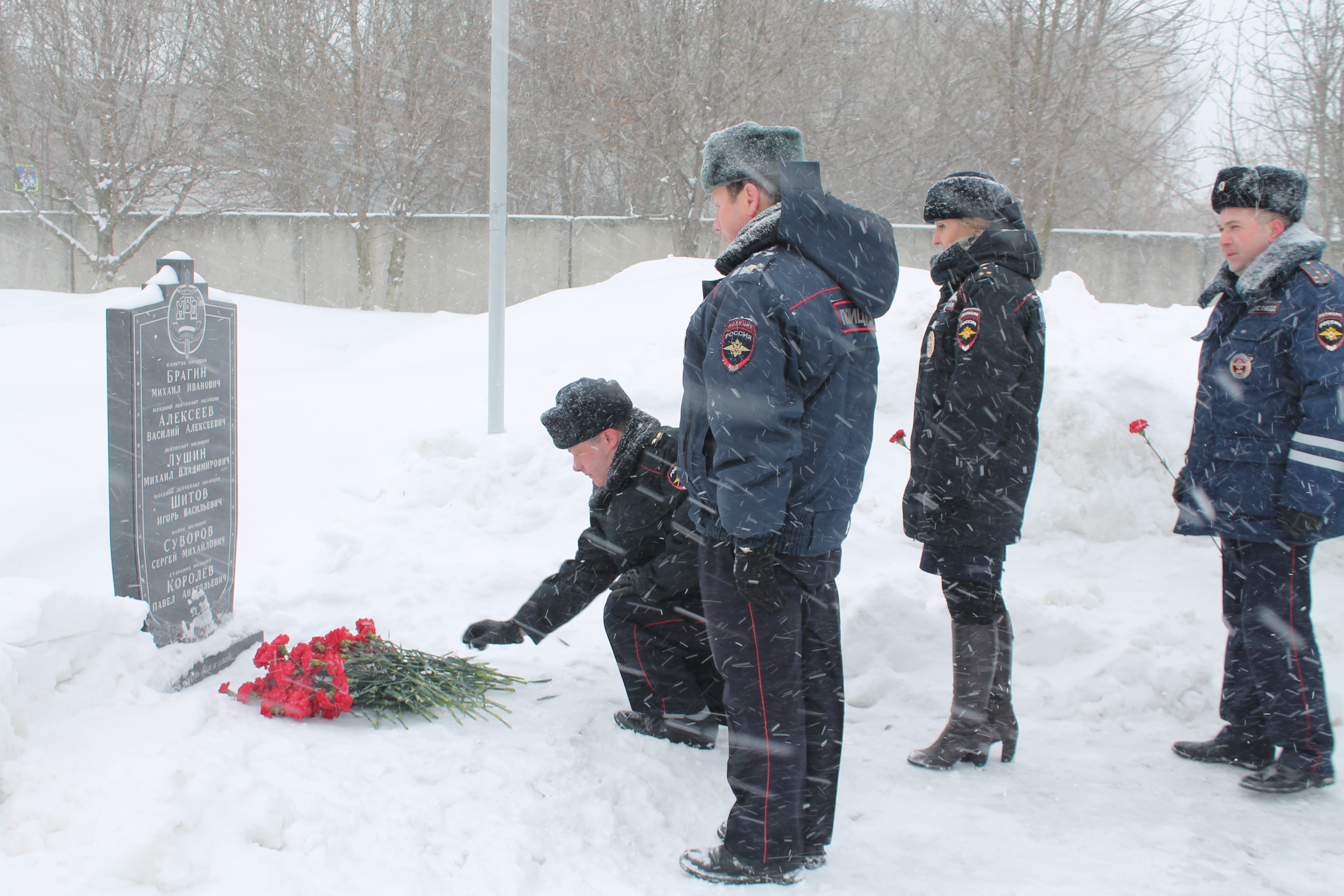 До личного состава были доведены приказы о присвоении первых и очередных специальных званий. После вручения погон и награждения сотрудников, достигнувших высоких показателей в оперативно-служебной деятельности, состоялось возложение цветов к мемориальной плите, установленной в честь сотрудников органов внутренних дел, погибших при исполнении служебного долга: Михаила Брагина, Василия Алексеева, Михаила Лушина, Игоря Шитова, Сергея Суворова и Павла Королева.