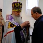 Настоятель Георгиевского храма иерей Алексий Власов преподнёс митрополиту Тихону образ святого мученика Георгия Победоносца, выполненный из хрусталя. Владыка в свою очередь вручил патриаршие награды А.А. Березкину, Г.Н. Березкиной, В.В. Бондаренко, а также иерею Антонию Савинову, немало потрудившимся для того, чтобы в городе появился Свято-Никольский храм.