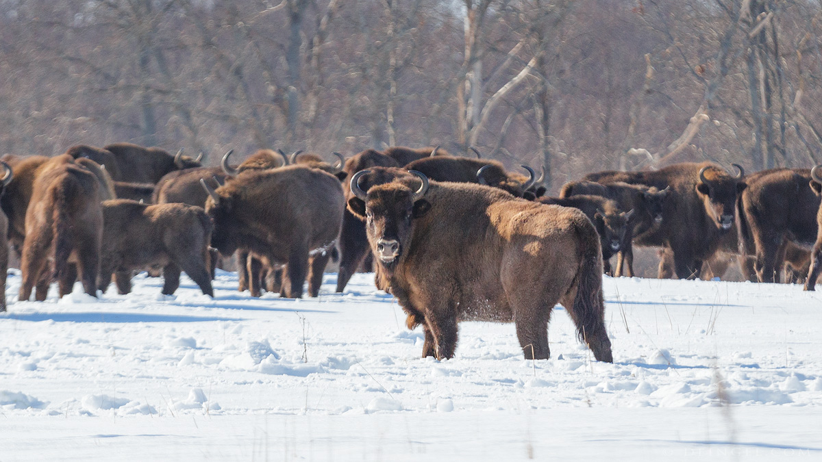 Зубр европейский — редкий вид, эндемик Русской равнины, ещё совсем недавно находившийся под угрозой полного исчезновения.