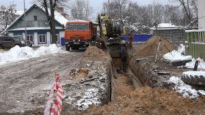 В настоящее время идут работы по прокладке теплосети. Согласно строительным правилам и санитарным нормам для нормального бесперебойного функционирования здания необходима резервная линия теплоснабжения от другого источника теплоснабжения. Эта линия будет проходить к больничному городку от теплового пункта котельной Кварцевого завода через ул. Октябрьская. Сейчас здесь проводятся земляные работы.