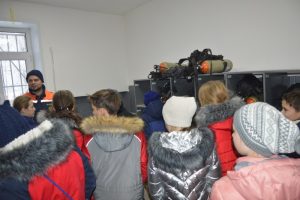 Сначала кадеты пришли в гости к спасателям аварийно-спасательной службы. Приём был тёплым и душевным. Школьники с интересом осмотрели все помещения, где спасатели пребывают во время несения службы. Это и тренажёрный зал, и учебный класс, и база ГЗДС, и комнаты с водолазным снаряжением, и гараж со специальной техникой и средствами спасения. «Столько всего, и всё такое разное!» – удивились кадеты. Впрочем, из сопутствующего экскурсию рассказа ребятам стало понятно, почему здесь представлен такой широкий спектр средств спасения. Современный спасатель – это «человек — оркестр», в разных ситуациях должен быть и врачом, и скалолазом и водолазом… и много ещё кем! Спасатели подробно рассказали о своей повседневной деятельности, продемонстрировали аварийно-спасательный инструмент, объяснили особенности его применения в разных ситуациях. А закончилась встреча дружеским общением.