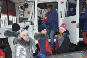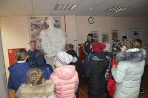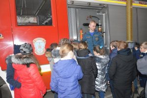 Далее экскурсия переместилась в пожарно-спасательную часть №2 города Владимира. Здесь ребята узнали о том, как проводят свои служебные сутки пожарные-спасатели. Как раз во время экскурсии они занимались в учебном классе. Кадеты узнали, что сотрудники МЧС это люди, которые постоянно тренируются, чтобы быть готовыми к любой чрезвычайной ситуации. А затем состоялась экскурсия по всем основным помещениям пожарно-спасательной части, в числе которых самое интересное для всех экскурсантов – гараж со специальной техникой и оборудованием.