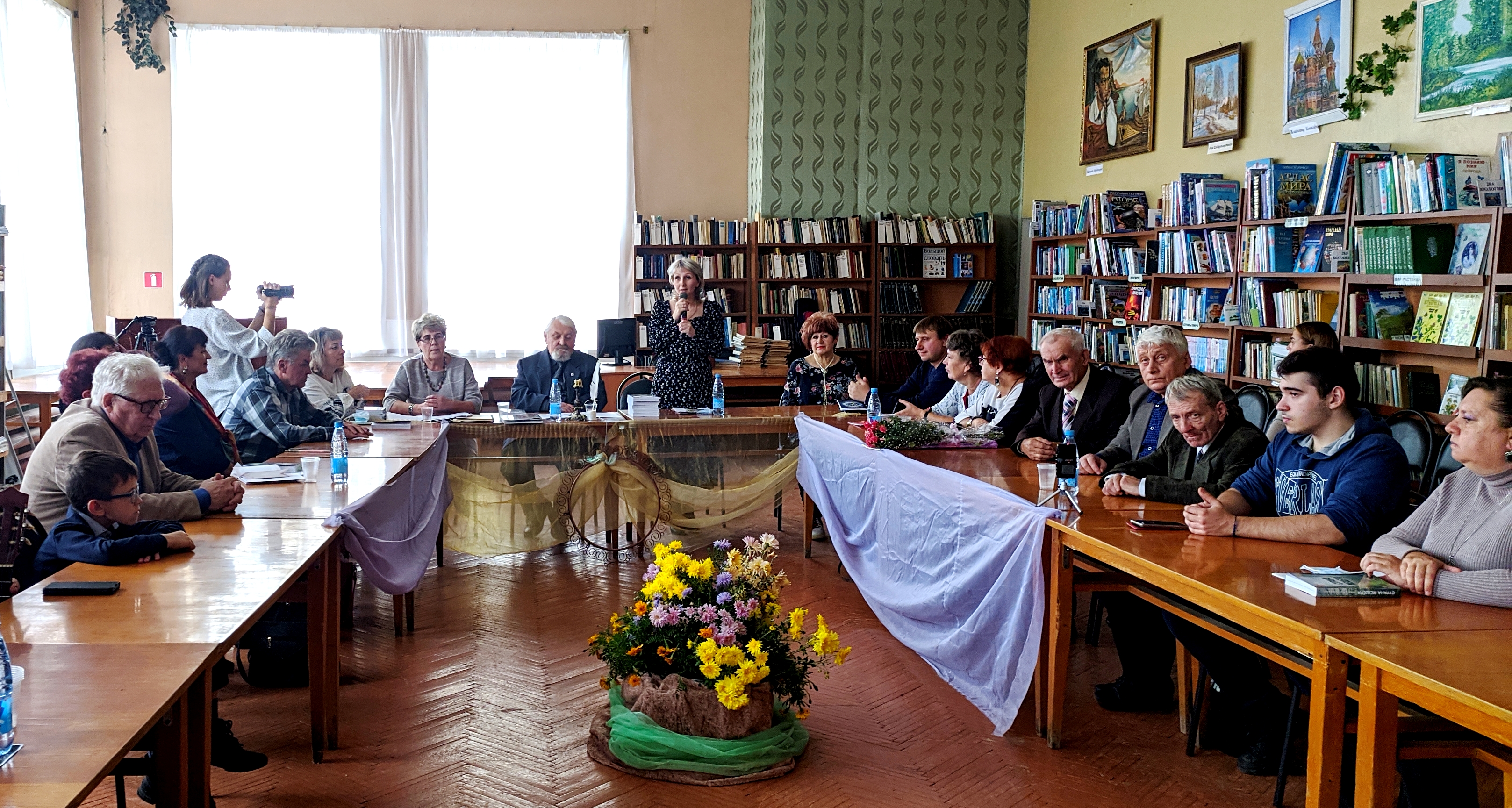 В читальном зале ГБИЦ собрались авторы материалов альманаха и местные поклонники литераторы. Открыла и вела программу Надежда Ульянова, компанию Надежде Владимировне составил писатель и краевед Николай Скулов. Участников вечера встречала музыкальная прелюдия в исполнении композитора из Курлова Юлии Хромовой. На стендах были представлены все выпуски альманаха и фотографии гусевских литераторов-фронтовиков с логотипом литобъединения. Все торжественно и чинно.