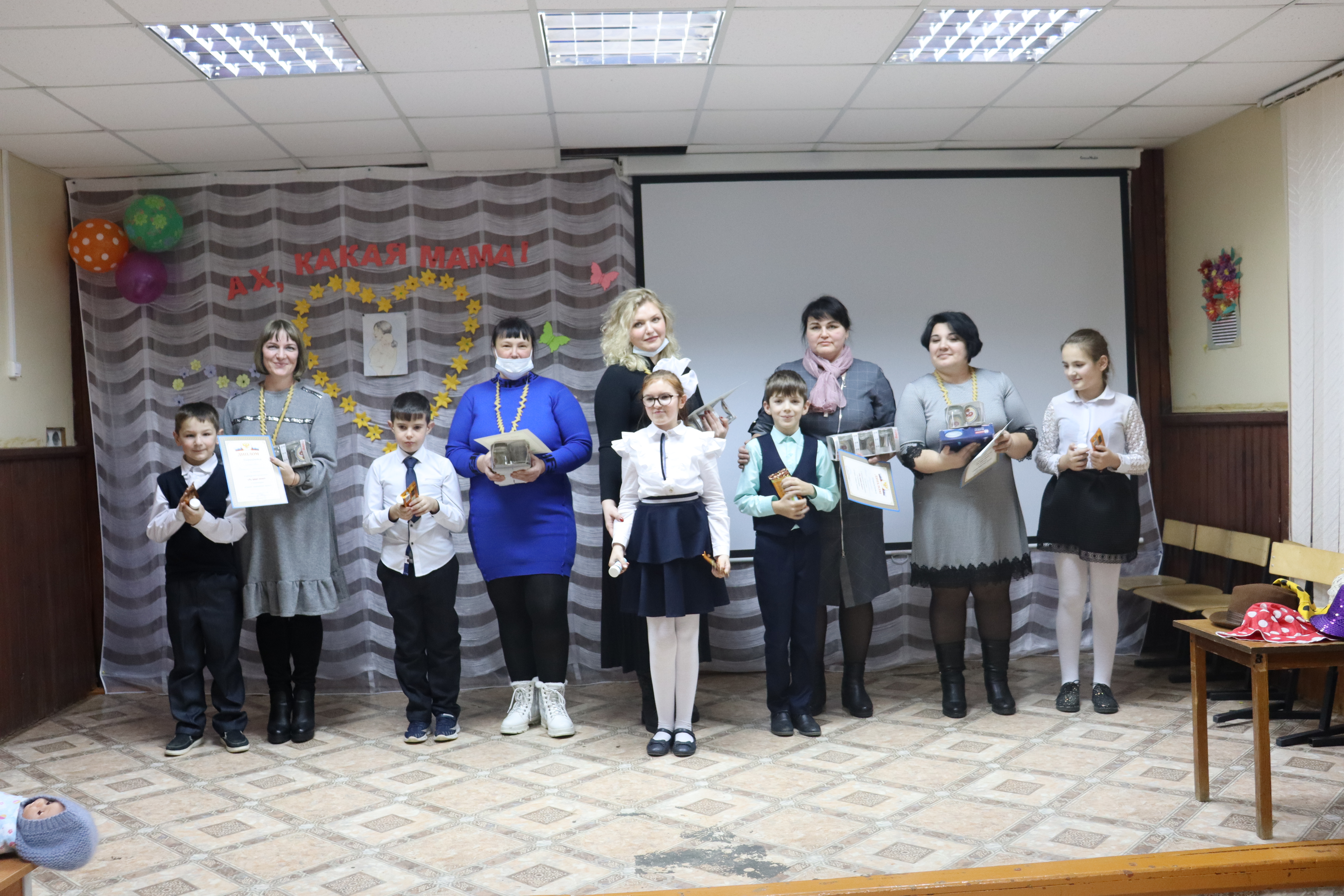 В конкурсной программе вместе со своими детьми приняли участие пять мамочек: Лабутова Татьяна Васильевна с сыном Русланом; Маджидова Гулсара Нобоваровна с дочерью Екатериной; Терентьева Наталья Владимировна с дочерью Софией; Марухина Жанна Николаевна с сыном Богданом; Мащенко Оксана Валерьевна с сыном Никитой. Мамам и детям было предложено поучаствовать в различных конкурсах: сделать бусы; угадать сказку, придумать эпитет для мамы; поучаствовать в танцевальном конкурсе и др. Победителями конкурсной программы стали Маджидова Гулсара Нобоваровна с дочерью Екатериной. Все участники были награждены грамотами администрации школы, а также сладкими и памятными подарками.