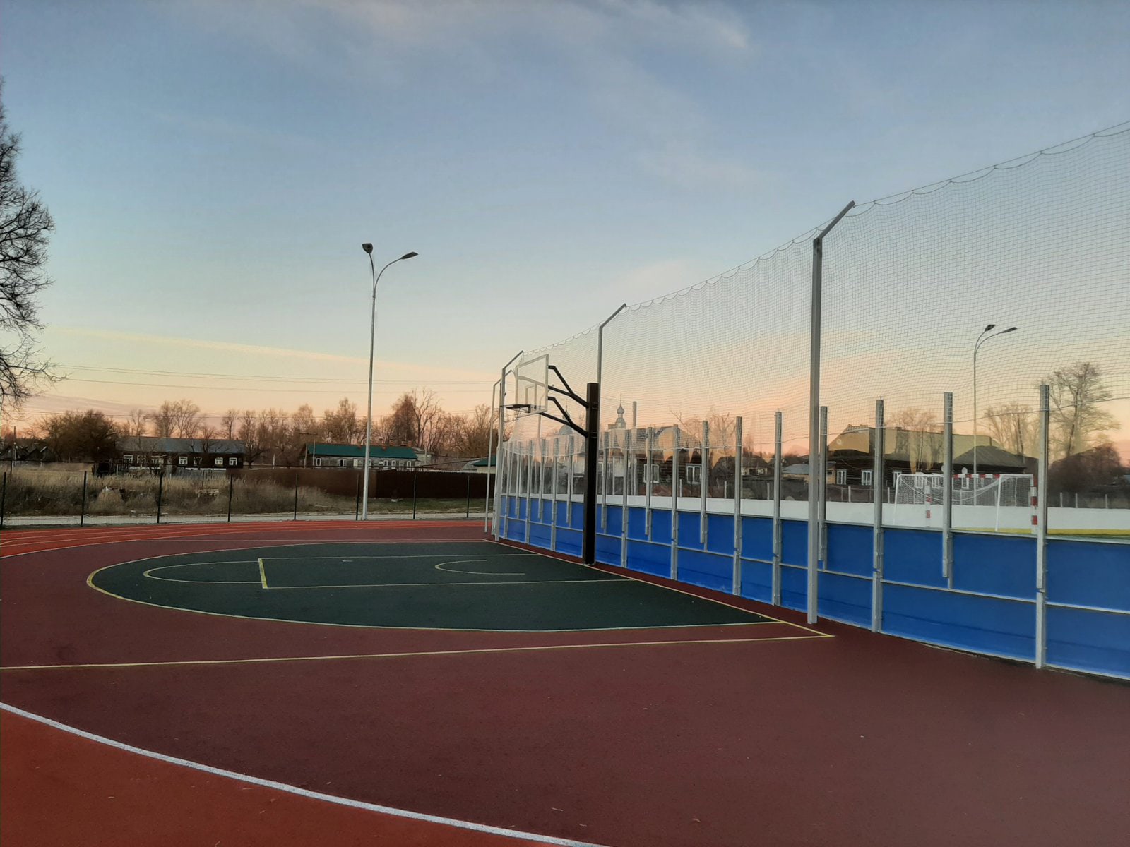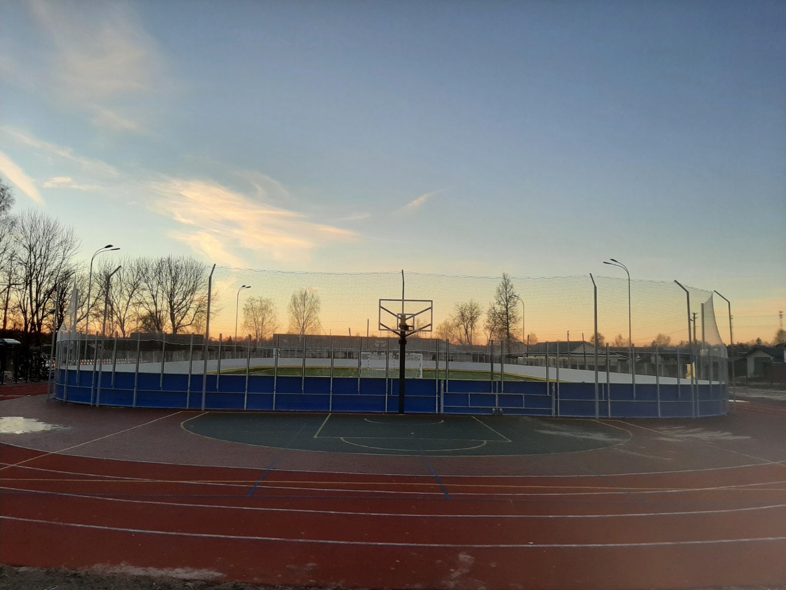 — универсальная площадка размером 60х30 метров с искусственным футбольным газоном и хоккейными бортами, которая зимой может заливаться под ледовый каток;