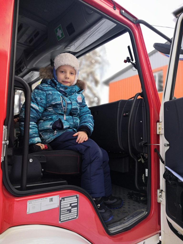 Первое, что сделал Илья по прибытии в пожарно-спасательную часть — сразу залез в кабину пожарного автомобиля. Почётный круг на месте начальника караула в пожарном автомобиле по территории части подарил массу впечатлений. Илья увлечённо наблюдал за действиями водителя, который предложил мальчишке включить звук сирены. Восторгу не было предела.