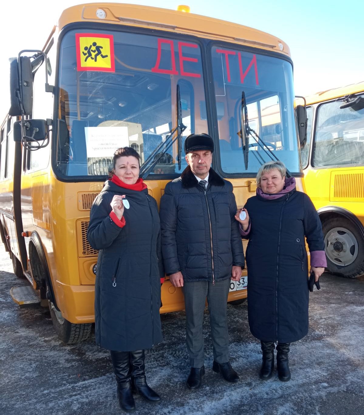 В соответствии с распоряжением Правительства РФ от 31.08.2021 № 2403-р для общеобразовательных организаций Владимирской области были закуплены 35 автобусов. Из них 2 автобуса предназначены для муниципальных образовательных организаций Гусь-Хрустального района. От гусевского района на торжественное мероприятие прибыли глава администрации района Алексей Кабенкин, начальник управления образования Оксана Федорова и директора школ.