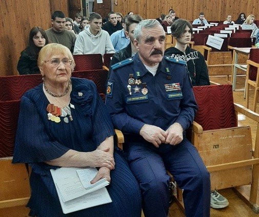 В качестве почетных гостей были приглашены члены инициативной группы «Отечество» — председатель «Союза советских офицеров» А. Ключинский, малолетняя узница концлагеря ГЕТТО Пузь Раиса Степановна, ветеран военной службы ВС РФ С. Иванов. Гостям и студентам мероприятия был предложен к просмотру видеоролик «Война – это…», которая показала весь ужас войны. Также был показан видеоролик с выступлением Маршала Советского Союза Георгия Константиновича Жукова, о подготовке и контрнаступлении Красной Армии.