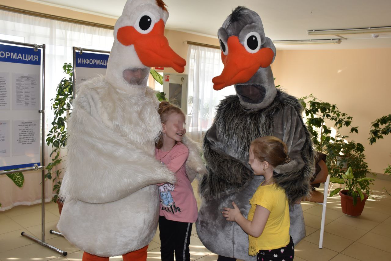 Преподаватель Детской школы искусств М.А.Балакирева Татьяна Година подготовила увлекательную программу для малышей и ребят постарше. От Единого социально-культурного центра поздравить именинников и поднять настроение всем детям прибыли два веселых гуся. Ростовые куклы, олицетворяющие символ города Гусь-Хрустального настолько понравились девчонкам и мальчишкам, что они на протяжении всего торжества обнимались с ними и фотографировались.