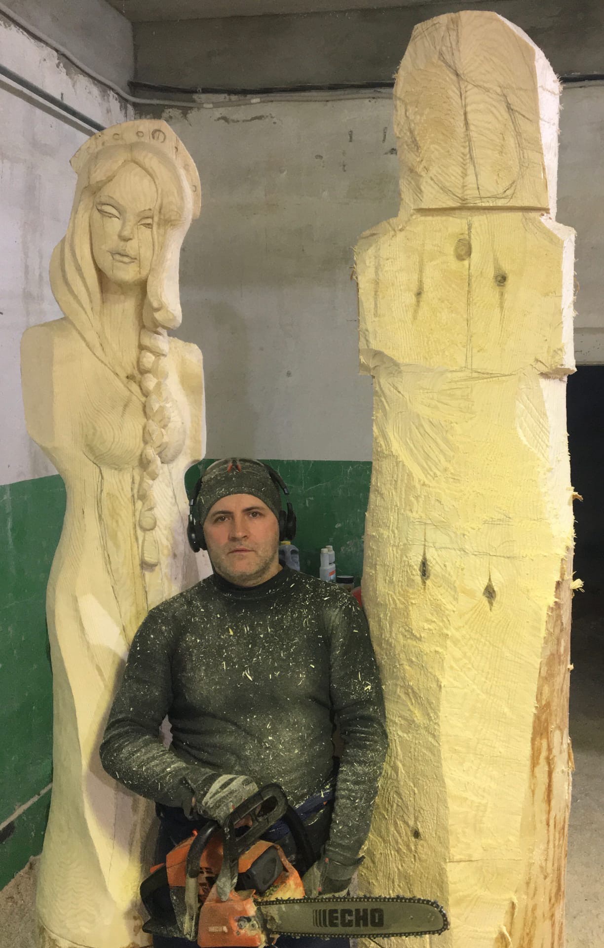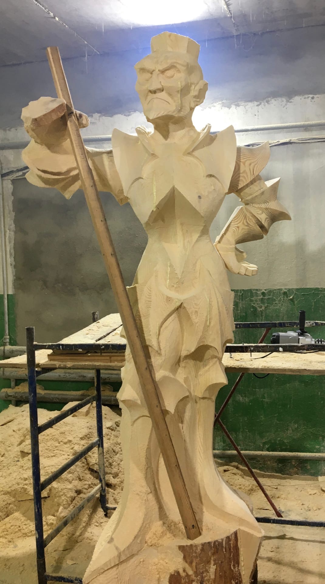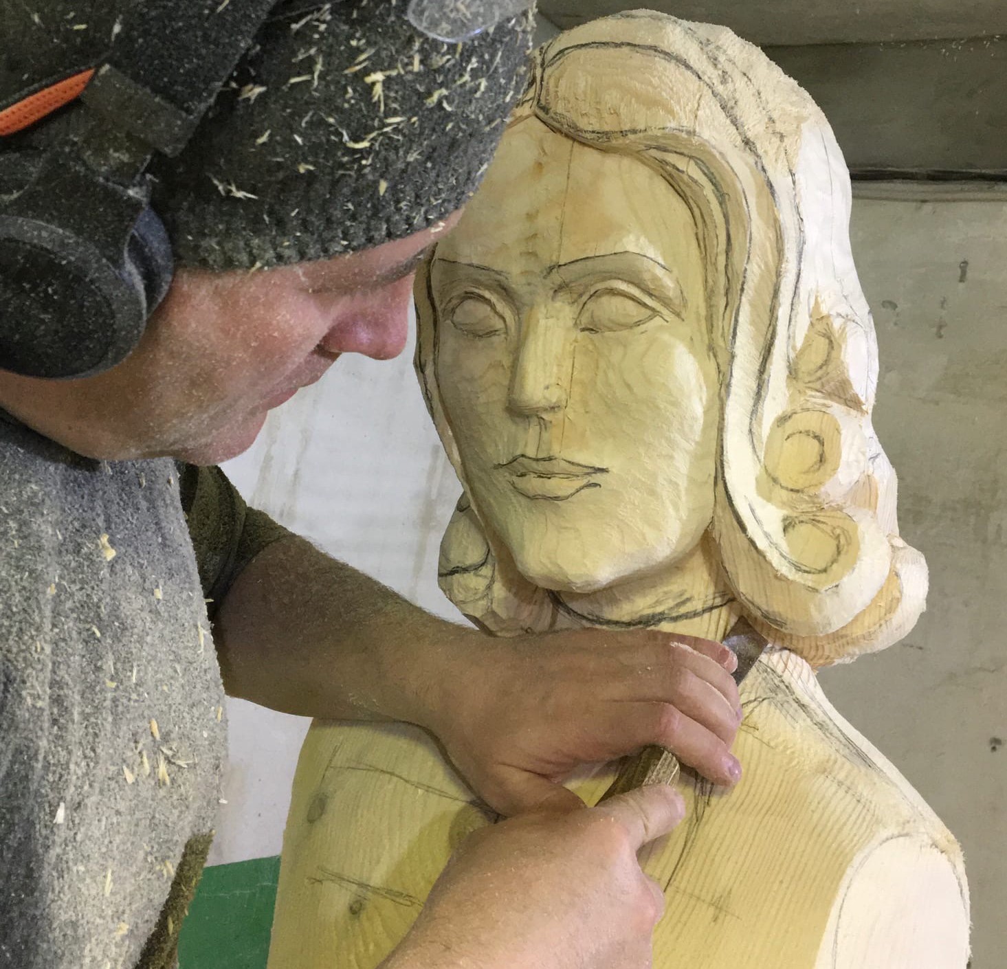 — В настоящее время готовится композиция с Иваном Царевичем, его прекрасной суженой и Серым волком, которую, отмечу, достаточно сложно резать — один только волк будет высотой около двух метров. Также мы (прим. Игорь Володин, Сергей Смолов и Николай Симонов) готовим целый набор скульптур. Одновременно нами, мастерами резьбы, сейчас ведется работа над 10 фигурами, еще 10 мы должны будем успеть сделать до 1 июня, чтобы к празднику Дня защиты детей в лесопарке «Сказка» уже появилась дружная «компания» персонажей. Общее количество героев, которое планируется установить за летне-осенний период — около 40, — поделился мастер резьбы по дереву.