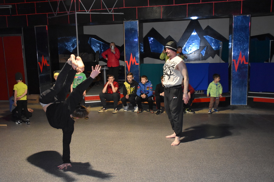 Антон и другие мальчишки по очереди показывали элементы брейкинга, объясняя азы танцевальной культуры. Необычайная пластика, потрясающие акробатические элементы, оригинальность и зажигательность «уличных танцев» – вот что завораживает зрителя с первых секунд. Парни не сразу поймали танцевальный ритм и включились в общий процесс. Но немного освоившись, Максим и Артем составили компанию другим брейк-дансерам. Первые движения, конечно, робкие, но новый опыт ребятам понравился. Мальчишки увлекались преимущественно спортом, Максим – футболом, Артем – большим теннисом, но и в танцах почерпнули для себя много интересного, притягательного.