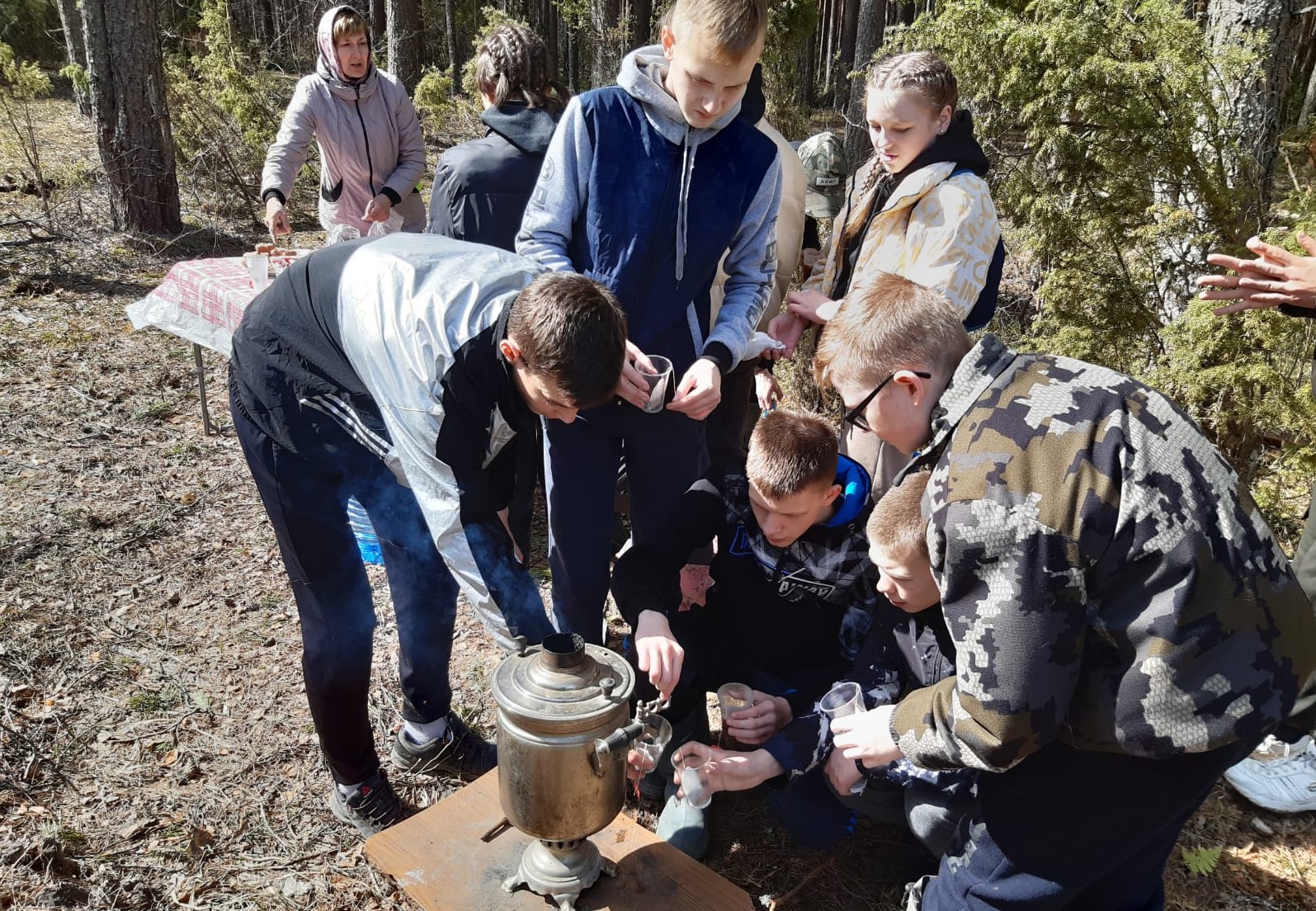После посадочных работ ребят ожидал приятный сюрприз: «берендеев час», а именно, чай из самовара и сладкие угощения.