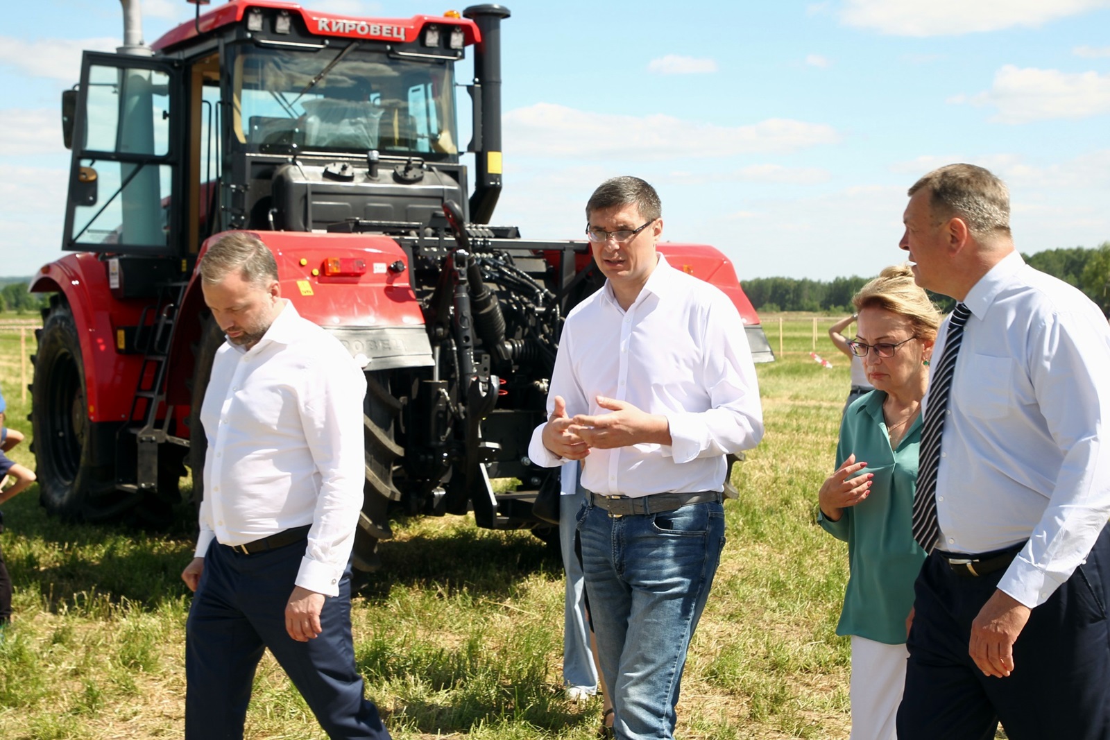 На «Дне поля» Александр Авдеев осмотрел современную почвообрабатывающую, посевную, кормозаготовительную и зерноуборочную технику, пообщался с представителями компаний-производителей и лично оценил технические возможности нового «Кировца», проехав на тракторе по выставочной площадке.