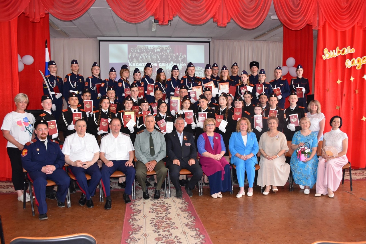 В школе № 10 состоялось торжественное итоговое кадетское собрание, в рамках которого выпускникам кадетских классов вручили свидетельства об освоении дополнительных общеразвивающих программ, а кураторы классов – ветераны Вооруженных Сил вручили грамоты и награды лучшим кадетам.