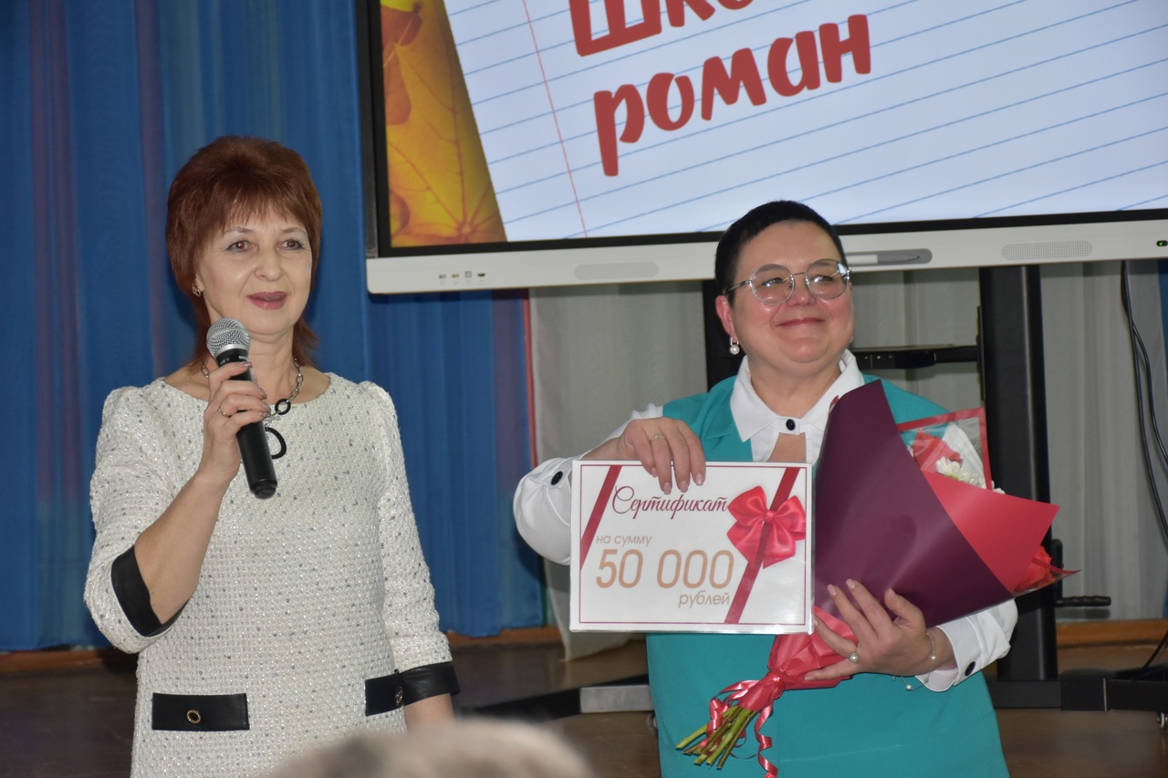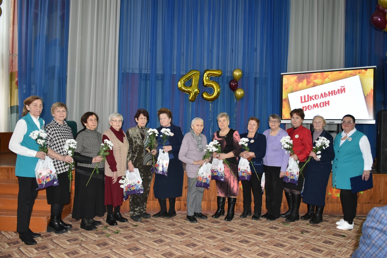 Яркая инсценировка школьных будней под названием «Школьный роман» внесла творческую нотку в канву торжества. Приятные моменты радости доставило чествование ветеранов педагогического труда. И, конечно¸ не могли не вспомнить самых первых учителей, которые щедро делились своими знаниями с учениками в годы становления образовательной организации. Ветеранам аплодировали стоя, благодаря их за труд, личный вклад каждого в образовательный процесс, душевную теплоту и мудрость наставничества.