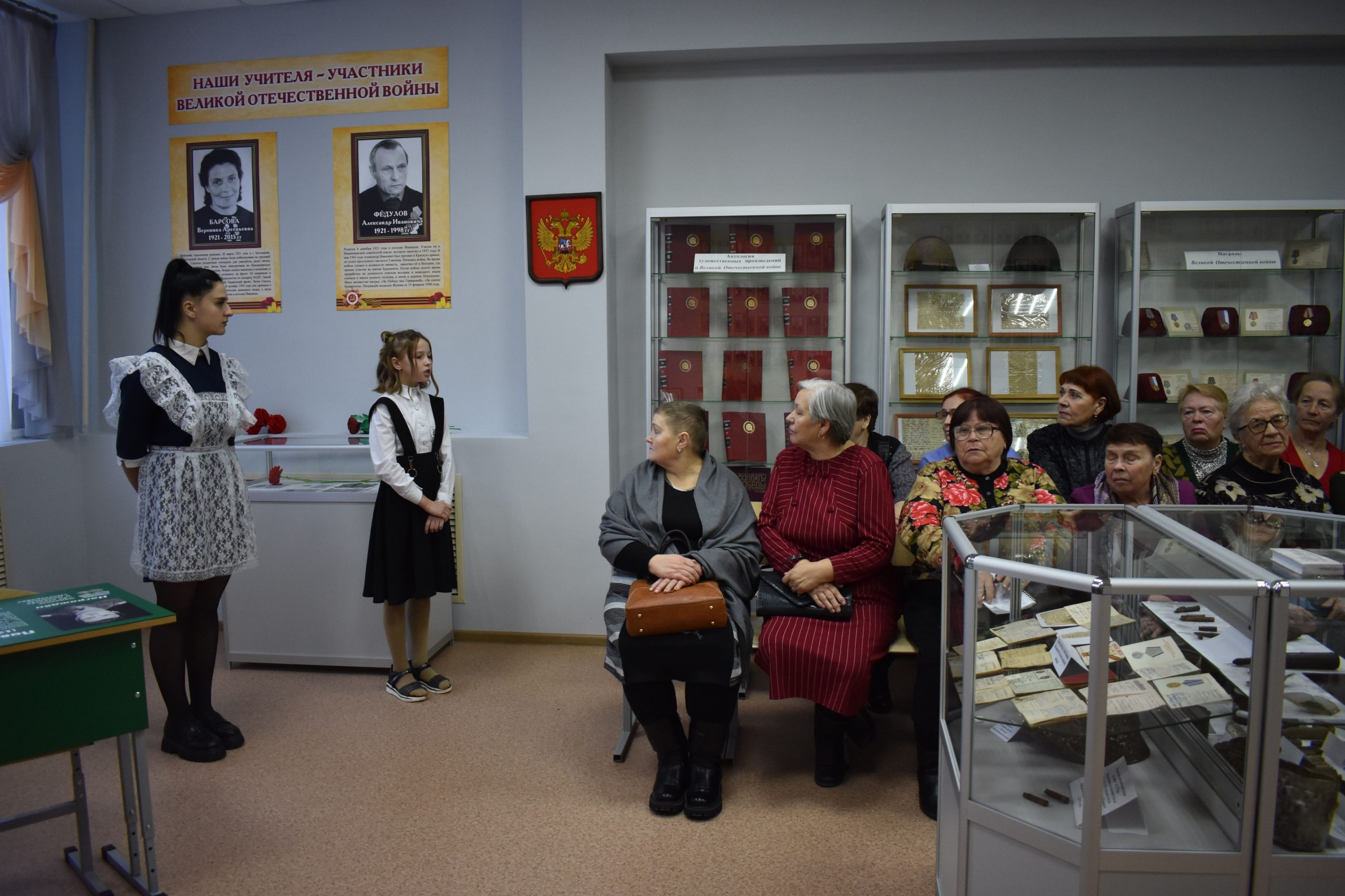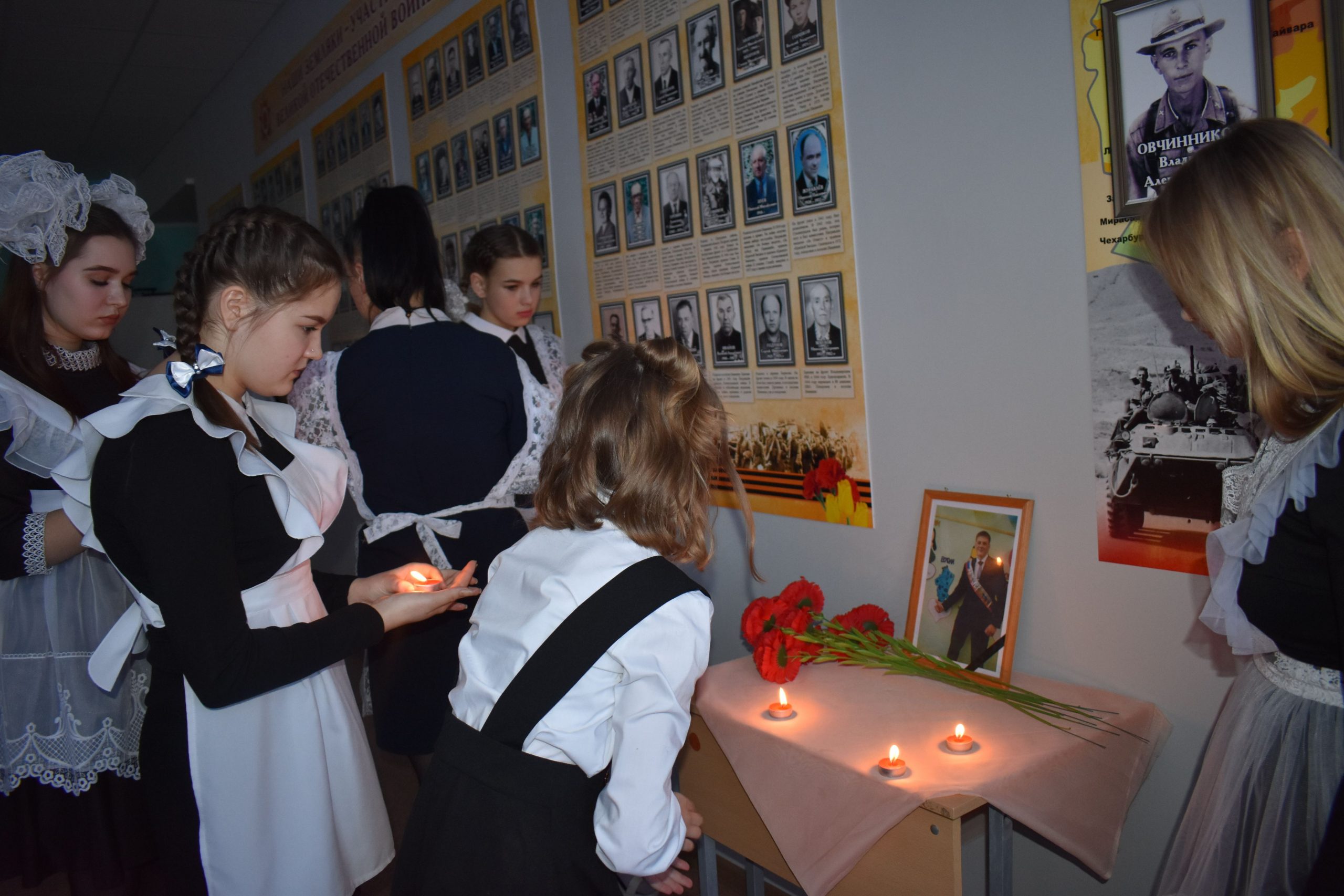 В этот день учителя и учащиеся школы подготовили трогательное мероприятие, где рассказали о великом подвиге, который совершили уроженцы поселка, деды и прадеды ребят. Исторический экскурс провели в школьном музее. Здесь оформлены стенды с фотографиями ветеранов-земляков, хранятся документы и личные вещи людей, героически сражавшихся на фронтах Великой Отечественной войны. Особое место в музейной экспозиции отведено выпускнику школы — Павлу Телегину, погибшему в июле 2002 года при выполнении боевого задания. Совсем недавно в музейной комнате появилась фотография Владимира Скворцова, который принимал участие в спецоперации на территории Украины и погиб в октябре 2022 года.