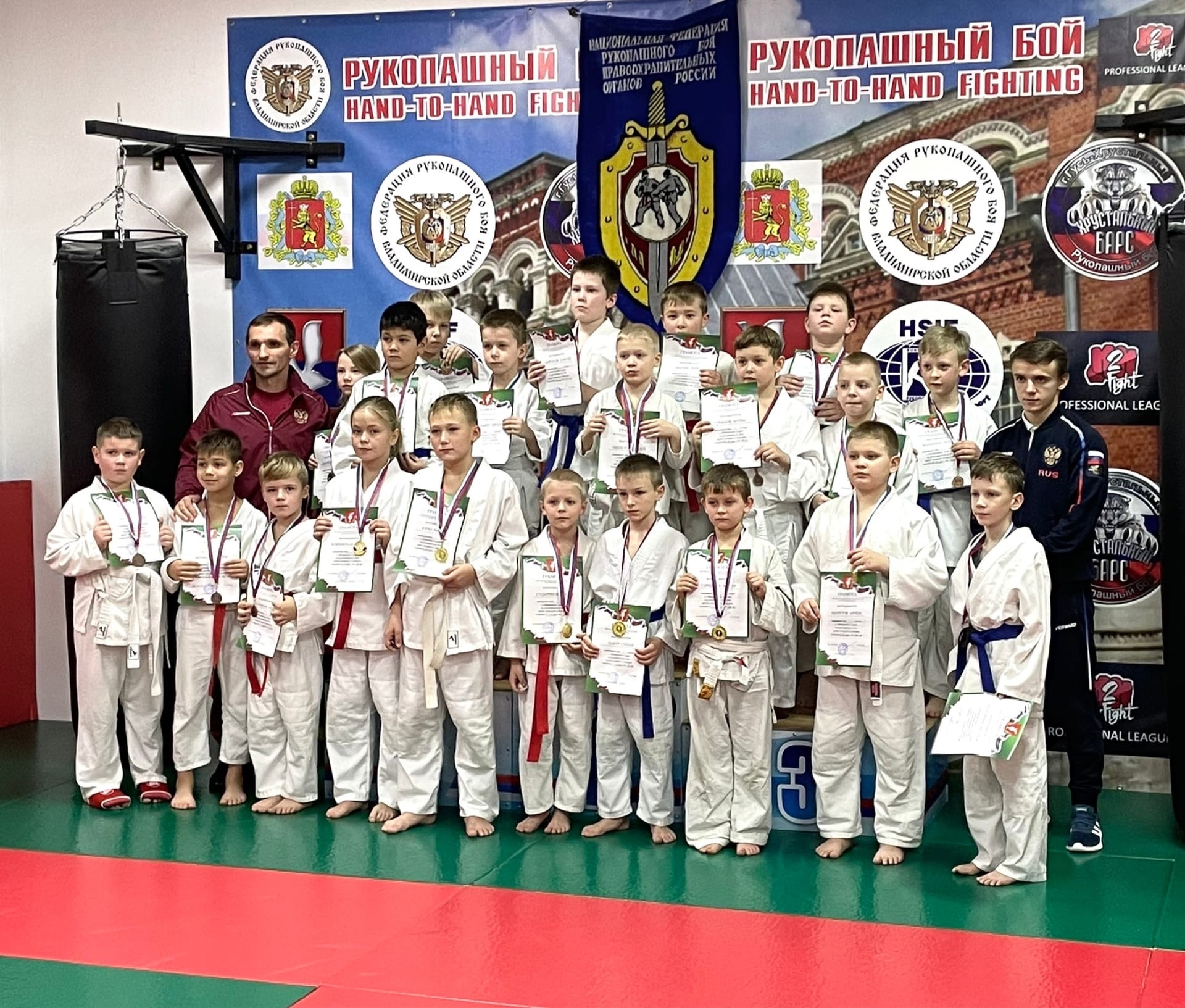 10 декабря ко Дню героев Отечества в зале единоборств ТЦ «Революция» состоялось внутриклубное спортивное мероприятие по рукопашному бою «Открытый ковёр» среди детей и юношей 7-14 лет спортивного клуба «Хрустальный Барс», рук. Котов Р.А. и «СШ «Мещёра», дир. Катаев А.Б.