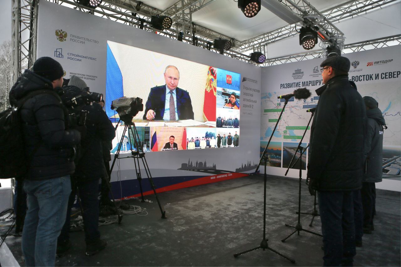 «Сегодня в разных регионах России мы открываем целый ряд новых транспортных объектов. Я от души вас всех поздравляю. <…> В составе коридора «Запад – Восток» в эксплуатацию будет введено три новых участка трассы М-12 Москва – Казань – Екатеринбург: два – в Свердловской области, ещё один – во Владимирской области. <…> Безусловно, работа по созданию эффективных транспортных коридоров должна быть продолжена. В целом за счёт развития дорожной сети нам нужно повысить пропускную способность российских автострад, уменьшить долю федеральных и региональных трасс, действующих в режиме перегрузки. Одновременно важно улучшать организацию дорожного движения, чтобы минимизировать количество узких мест и пробок. И конечно, среди ключевых приоритетов – ускоренное снижение мест высокой концентрации ДТП, других аварийно опасных участков. Я уже давал поручения на этот счёт и вновь подчеркну: от решения этого вопроса напрямую зависит сбережение жизни и здоровья наших граждан. Уверен, что общими силами все планы в сфере дорожного строительства мы обязательно претворим в жизнь, добьёмся всего задуманного».