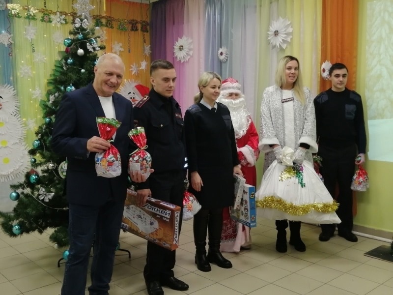 В канун Нового года в рамках акции «Полицейский Дед Мороз» сотрудники разных подразделений МО МВД России «Гусь-Хрустальный» совместно с представителем Общественного совета при Игорем Новиковым побывали в гостях у воспитанников социального реабилитационного центра, расположенного в поселке Уршельский Гусь-Хрустального района.