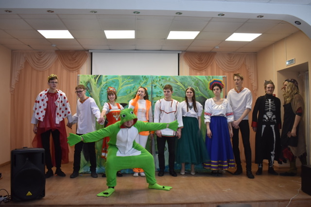 Для детей помладше волонтеры подготовили интерактивную сказку с элементами игры «Царевна лягушка». Сказка имела большой успех, раздавался громкий смех и учащиеся школы получили огромное удовольствие от представления.