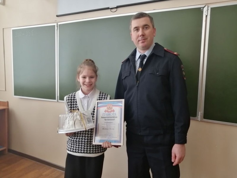 Руководители подразделений участковых уполномоченных полиции и по делам несовершеннолетних территориальных органов внутренних дел УМВД России по Владимирской области посетили школы, где учатся Волкова Веста (город Гусь-Хрустальный) и Горшков Кирилл (Кольчугинский район), поблагодарили ребят за участие в конкурсе и внимание к работе сотрудников полиции и вручили заслуженные награды. А Игорю Арефьеву из Александровского района Диплом победителя сотрудники полиции вручили прямо в детском саду, который посещает юный художник.