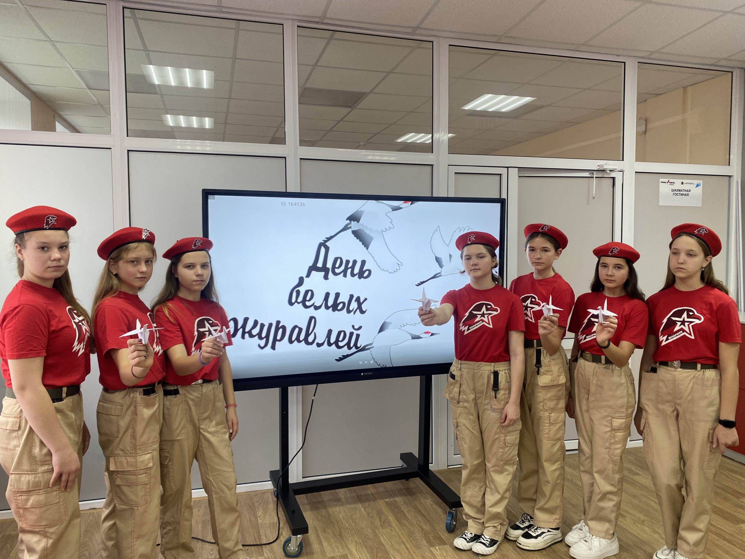 В рамках празднования Дня белых журавлей юнармейцы Курловской средней школы приняли участие в акции памяти «Летят в бессмертие журавли».