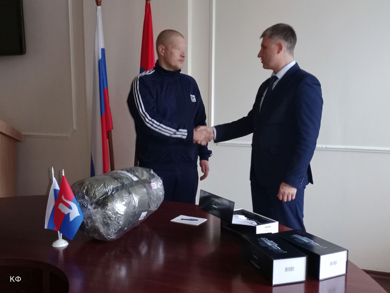 Глава города Алексей Соколов передал участнику СВО, находящемуся в отпуске, тепловизоры в полной комплектации, которые помог приобрести Опытный стекольный завод, и гуманитарный груз, собранный предприятием.