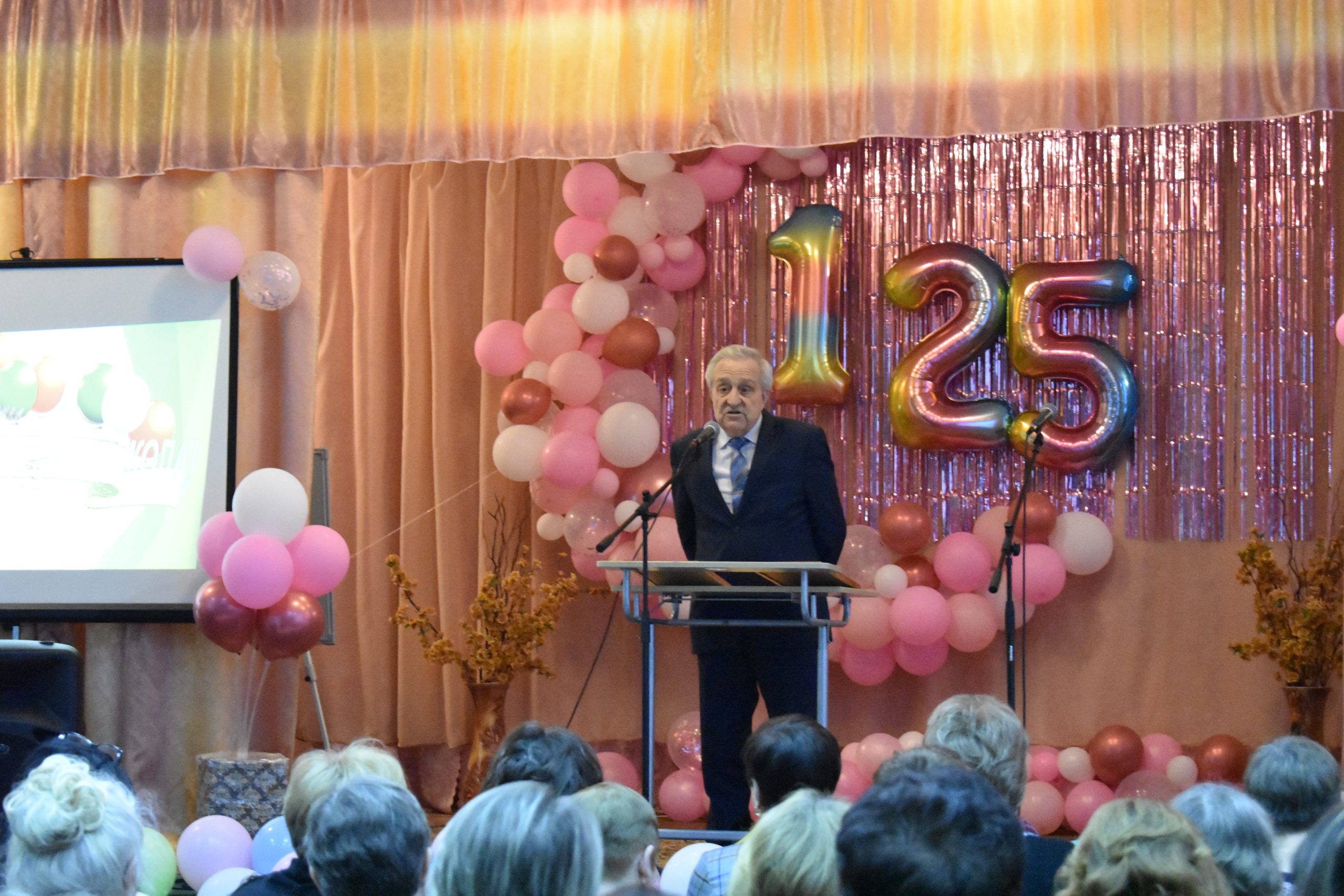Под аплодисменты присутствующих ведущие называли имена учителей-ветеранов, которые несколько десятилетий учили детей. Чтобы вспомнить тех, кого уже нет рядом гостям продемонстрировали видеоролик со 100-летнего юбилея.