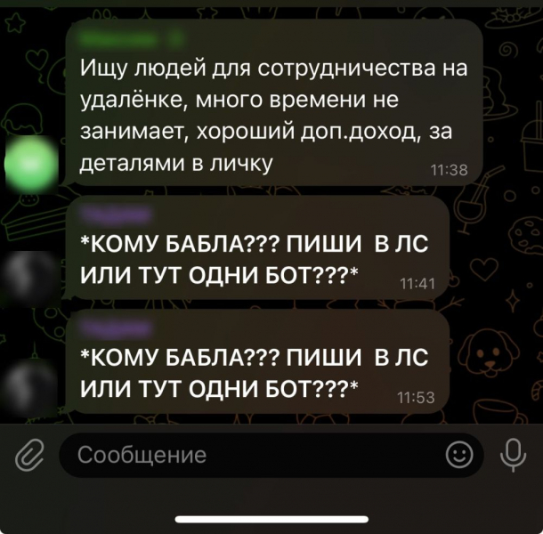 Самый распространенный вариант, когда в мессенджере вам пишет новый для вас человек и предлагает легкую и очень прибыльную подработку. За такими «предложениями», как правило, скрывается деятельность, связанная не только с различного рода аферами, но и с незаконным распространением наркотических средств.