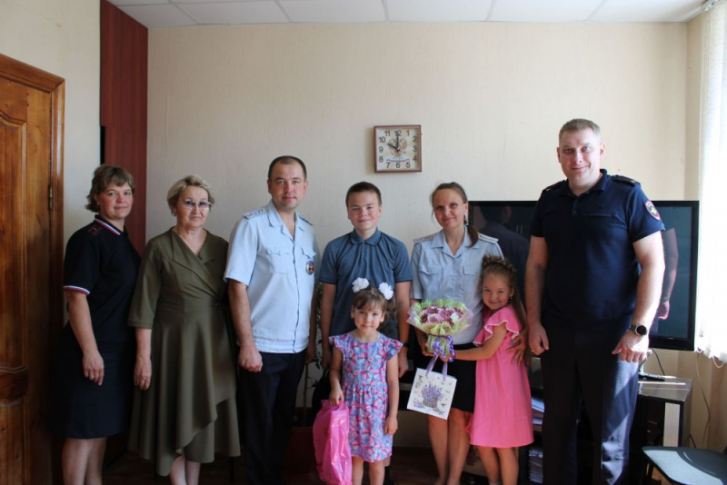 По случаю Всероссийского праздника, посвященного Дню семьи, любви и верности, временно исполняющий обязанности начальника Межмуниципального отдела МВД России «Гусь-Хрустальный» подполковник полиции Алексей Воробьев, временно исполняющий обязанности начальника отделения по работе с личным составом майор полиции Светлана Зуева и председатель Общественного совета при МО МВД Наталья Турнаева поздравили с праздником многодетную семью Седовых.