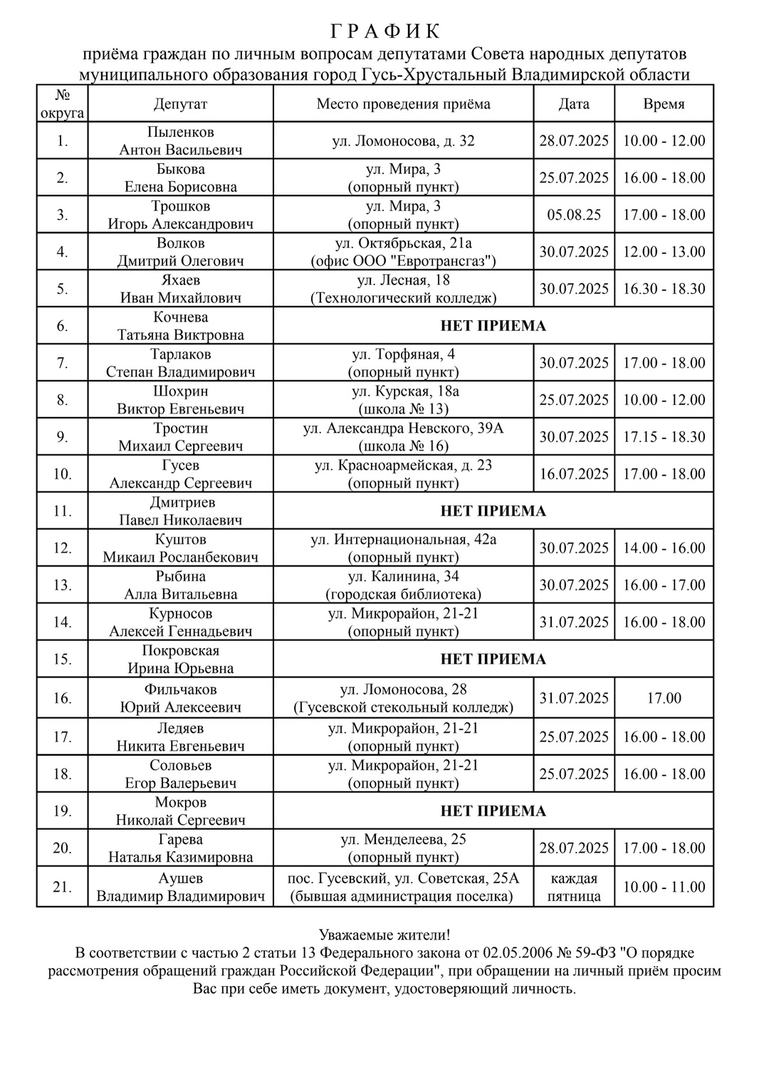 ДомойОрганизацииГород, властьГрафик приема граждан по личным вопросам депутатами СНД График приема граждан по личным вопросам депутатами СНД 14.07.2025 0 964 Поделиться ссылкой: Оцените этот материал Информационная продукция для людей, достигших возраста шестнадцати лет (16+) Предыдущая статьяСоберем школьный портфель вместеСледующая статьяНа водоеме в Гусь-Хрустальном районе погиб человек ПОХОЖИЕ МАТЕРИАЛЫ Город, власть График приема граждан 11.09.2025 Город, власть График приема граждан по личным вопросам депутатами Совета народных депутатов 07.04.2025 ОСТАВЬТЕ ОТВЕТ Отменить ответ Комментарий: Пожалуйста, введите ваш комментарий! Имя:* пожалуйста, введите ваше имя здесь Электронная почта:* Вы ввели неверный адрес электронной почты! пожалуйста, введите свой адрес электронной почты здесь Веб-Сайт: сохраните мое имя, адрес электронной почты и веб-сайт в этом браузере для следующего комментария. Δ Этот сайт использует Akismet для борьбы со спамом. Узнайте, как обрабатываются ваши данные комментариев.