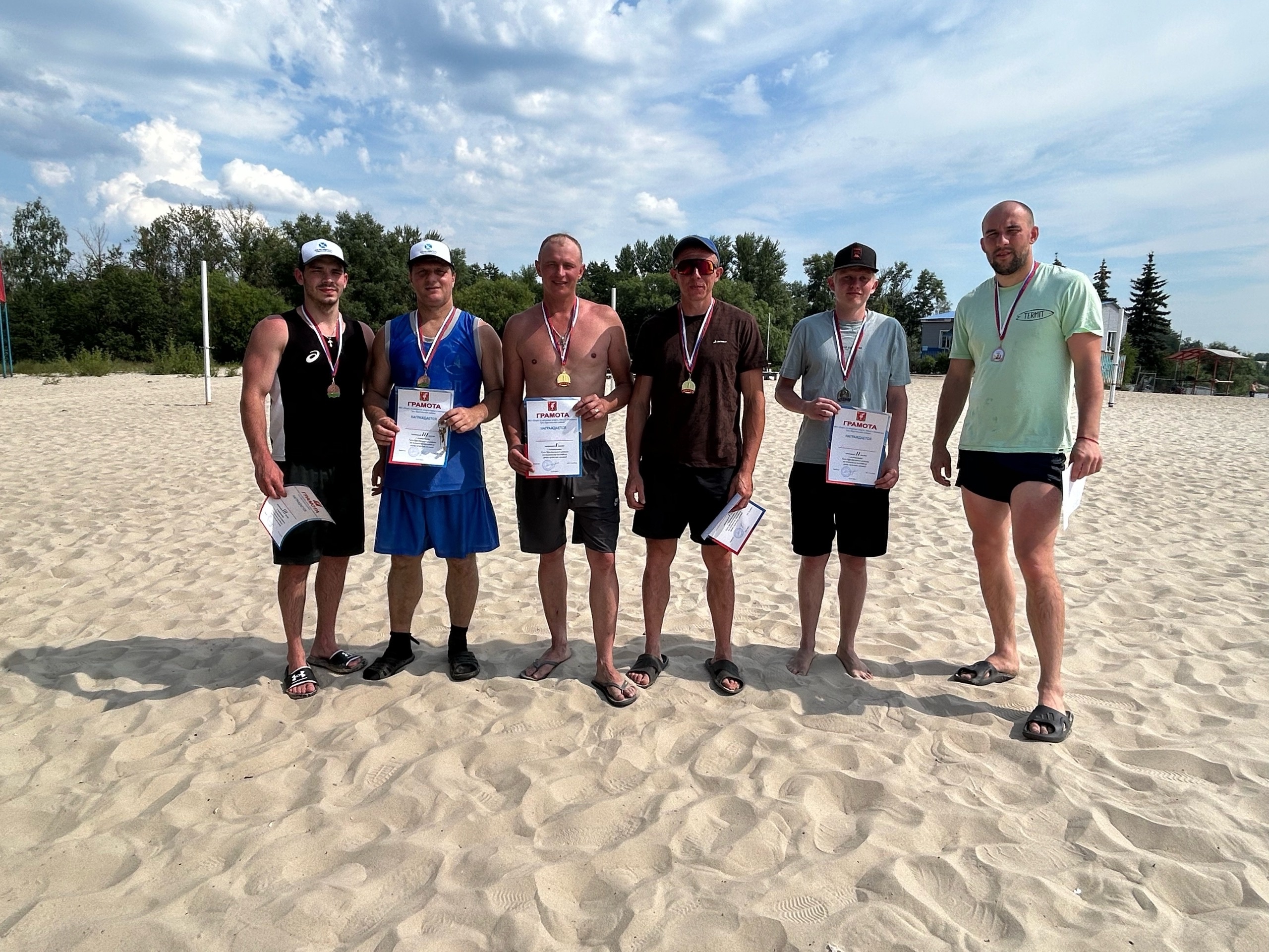 Пока девушки выясняли кто из них поднимется на пьедестал, мужчины бились за выход в финальную четверку. В первом полуфинале встретились коллективы «Экспо Гласс» г. Курлво — «Символ» г. Курлово, где сильнее оказались пляжники из команды «Символ». Вторым финалистом стала команда «Золотково» п. Золотково, которая победила команду «Экспо Гласс-2» г. Курлово.