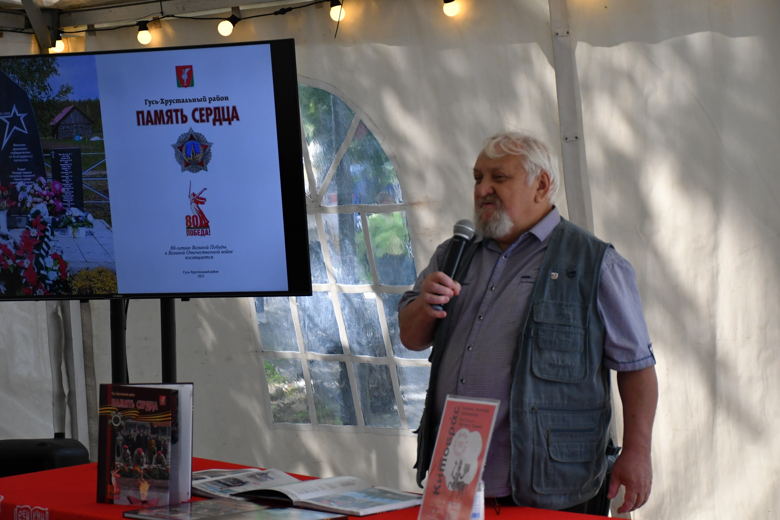 16 августа на межрегиональной книжной ярмарке «Китоврас-25» во Владимире состоялась презентация новой книги Гусь-Хрустального района «Память сердца». Презентацию провел автор-составитель, краевед Николай Скулов.