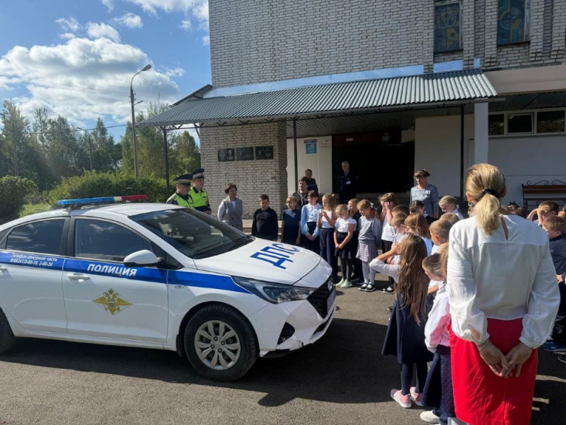 Дорожные полицейские познакомили ребят с автомобилем дорожно-патрульной службы. Сотрудники полиции не только показали и рассказали об устройстве специального транспортного средства, но и разрешили школьникам посидеть в салоне автомобиля, включить специальную световую и звуковую сигнализацию, а также призвать пешеходов соблюдать правила дорожного движения через громкоговорящую связь.