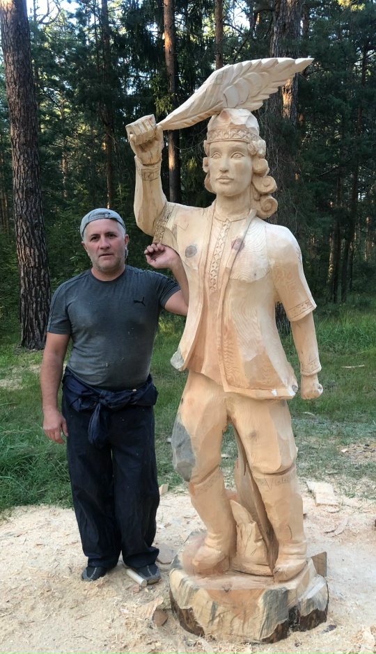 Поскольку работы у Игоря монументальные, он творит в основном не с помощью стамески, а использует бензопилу и болгарку. Самая оптимальная древесина — это сосна, мягкая и податливая.
