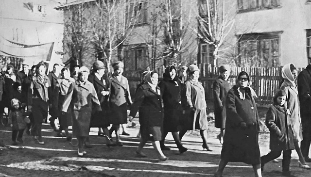 Особую, неповторимую атмосферу создавали праздники. Каким ярким было Первое мая! Все мастерили огромные цветы из пушистых веток и гофрированной бумаги, улицы пестрели шарами, а большая колонна людей с песнями под гармонь шла по улицам, выкрикивая дружное «Ура!».