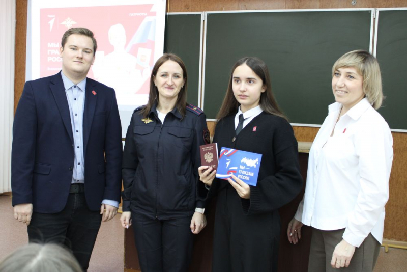 Врио начальника ОВМ МО МВД России «Гусь-Хрустальный» майор полиции Елена Пронина вместе с начальником управления образования г. Гусь-Хрустальный Татьяной Причепойи начальником управления образования Гусь-Хрустального района Оксаной Федоровой вручили юным жителям главный в их жизни документ. В мероприятии приняли участие пятнадцать школьников, показавших заметные успехи в учебе, спорте и творчестве. Руководители поздравили ребят, рассказали им о значимости паспорта в жизни каждого гражданина и правилах обращения с главным документом и пожелали школьникам быть законопослушными гражданами своей страны.