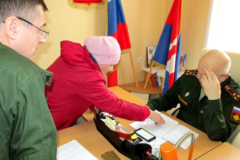 Незадолго до Нового года в Общественной приемной Губернатора в Гусь-Хрустальном с обращениями граждан разбирался военный комиссар Владимирской области полковник В.М. Кручинин. Подобные встречи особенно важны в преддверии президентских выборов, помогают снижать социальную напряженность в отдельных сферах жизни. Губернатор С.Ю. Орлова уделяет этой «общественной» для областного начальства работы большое внимание. Вместе с полковником Кручининым прием вели военный комиссар Гусь-Хрустального города и района подполковник О.Е. Куликов и заведующая приемной Л.А. Лабецкая.