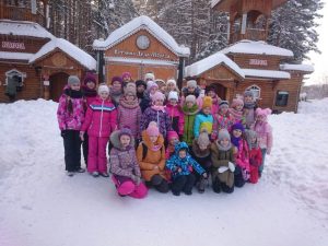 В первый же день мы посетили Почту Деда Мороза, катались на горках. На следующий день мы с утра поехали на Вотчину. Это примерно 13 км от города. Вотчина встречает нас трескучим морозом, но от этого ощущение реальности происходящего только удваивается. Ведь мы приехали не абы куда, а к самому главному волшебнику Деду Морозу! Начинается Вотчина с тропы сказок. Идешь по лесу и на каждом шагу встречаешь сказочных персонажей. Здесь живет Баба-Яга, ученый Кот, Зайчик, Лиса, Сова, Медведь, Январь из сказки «12 месяцев» и т. д.